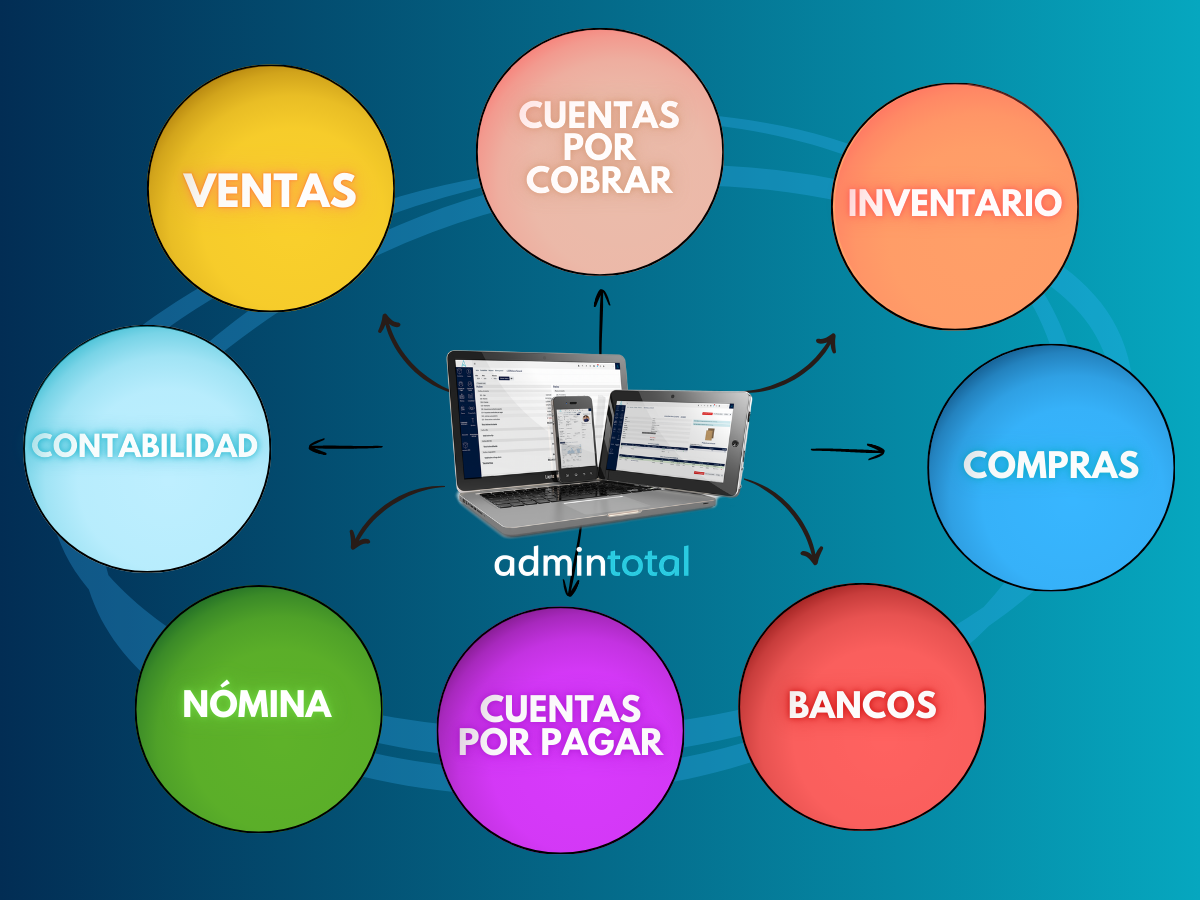 Admintotal® es un sistema de gestión empresarial (ERP) en una plataforma web que permite la integración en tiempo real de todas las áreas de la empresa generando registros contables e información oportuna para la toma de decisiones.